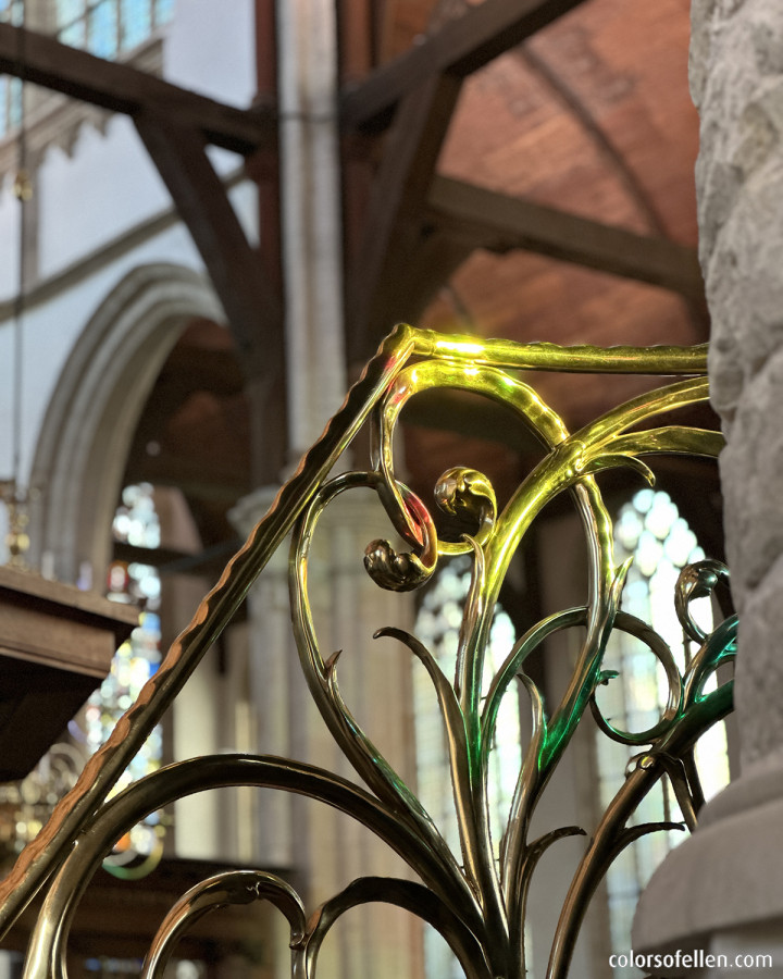 Als de zon in de kerk door de beplakte vensters valt, ontstaan indrukwekkende lichtvlekken in deze prachtige kerk. Zeer de moeite waard!